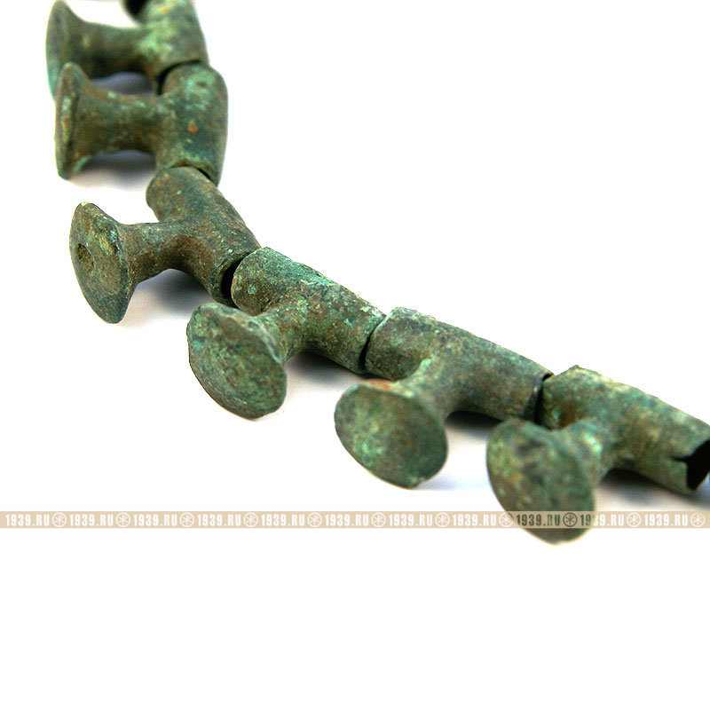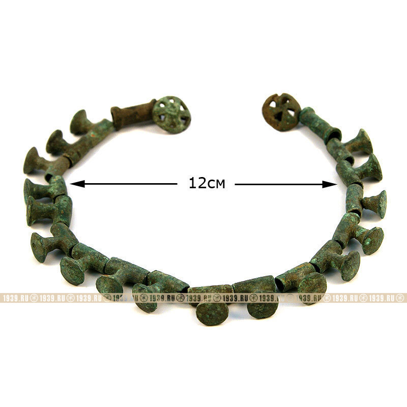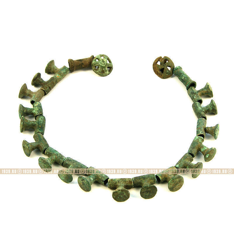 Бронзовое шейное ожерелье. Кобанская культура. 7 век до нашей эры. Относится к серединному периоду Кобанской культуры. (северокавказская археологическая культура бронзового — железного века). Из старой коллекции г. Пятигорск. в Ставропольском крае. Бронза, многовековая патина. Предмету около 2500 лет ! Длинна ожерелья в развернутом виде: 36 см. Приятно иметь в личной коллекции археологический артефакт, которому могли бы позавидовать некоторые музеи мира.