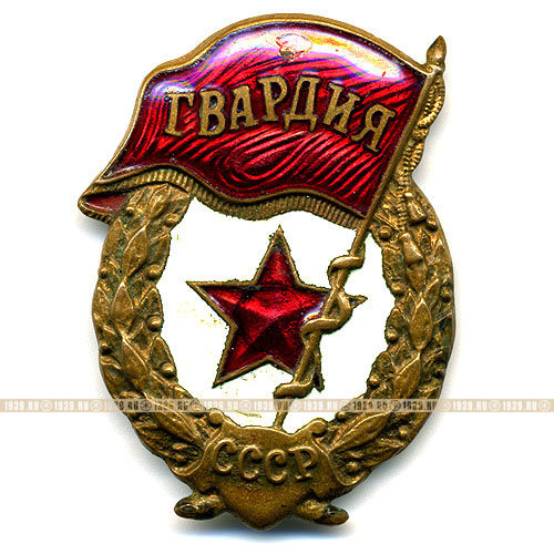 Нагрудный знак "ГВАРДИЯ". Период СССР, послевоенная. На реверсе клеймо "П" и цифры "69". РЕДКАЯ!
