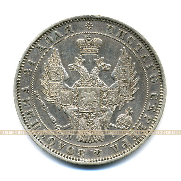 Монета Серебро. Царский рубль 1848 г. С.П.Б. Н.I.