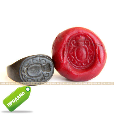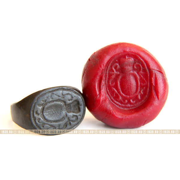 Старинный перстень с печатью в виде стилизованного дворянского герба (псевдогеральдика). 18 век. Перстень-печатка — кольцо с изображением как правило дворянского герба или инициалов, которое принято носить на мизинце левой руки. Предназначен для проставления оттиска на горячем сургуче или воске при запечатывании письма. Верхняя площадка перстня-печатки представляет собой матрицу, где выгравирован «обратный» (зеркальный) рисунок так, чтобы при оттиске на сургуче оставался правильный рисунок. Перед оттиском площадкой с гравировкой обычно проводят над дымом свечи, так чтобы при оттиске детали рельефного рисунка были чётко различимы.