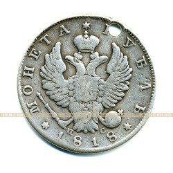 Старинная русская монета царский серебряный рубль 1 рубль 1818 СПБ П.С.