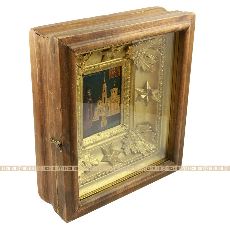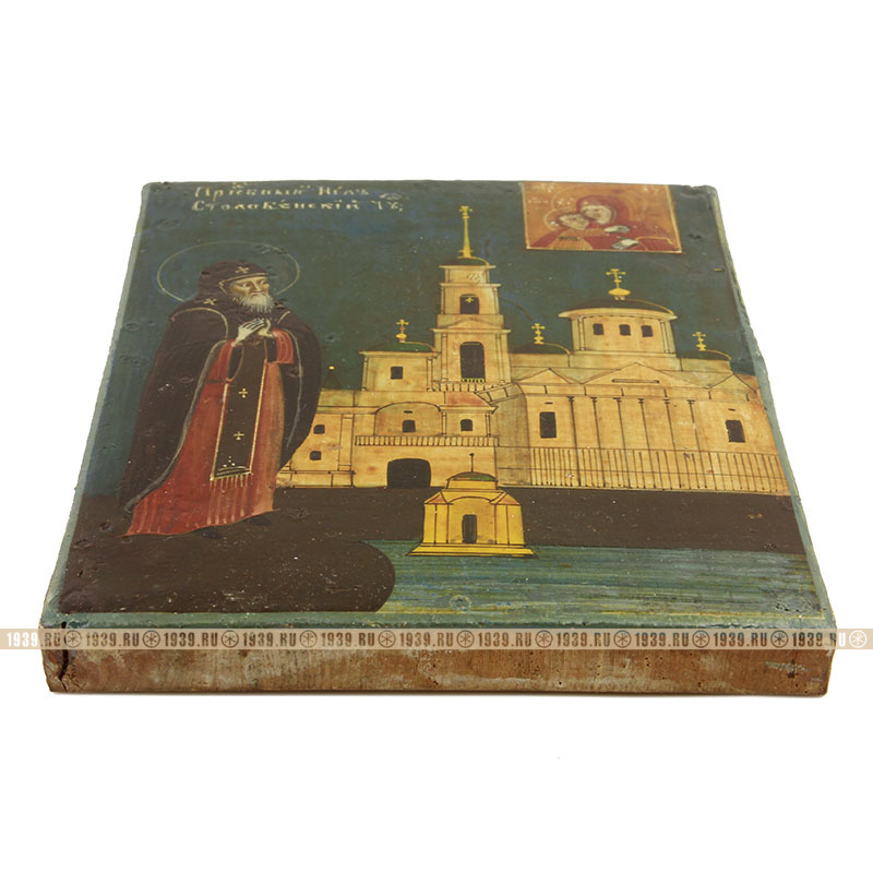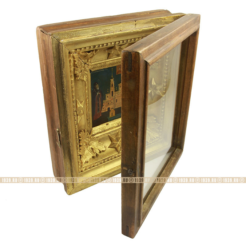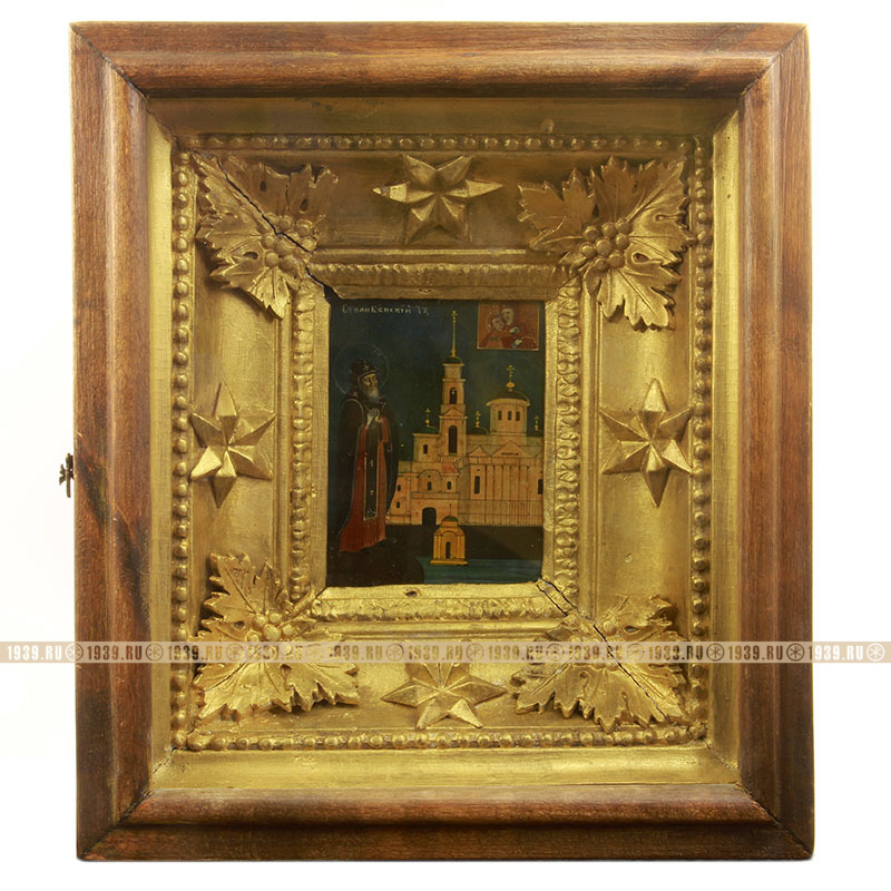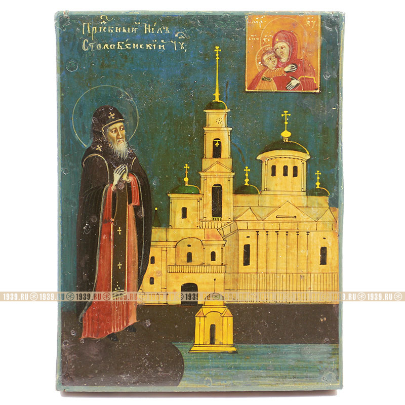 Старинная паломническая икона в оригинальном киоте святой преподобный Нил Столобенский. Россия, Нилова пустынь 1870-1890 год
