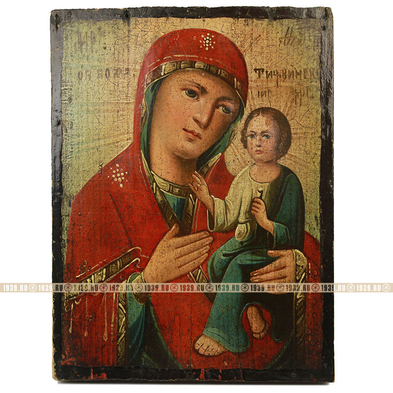 Старинный образ чудотворной иконы из Тихвинского монастыря – популярная тема для мастеров иконописцев из Курской губернии. Лучистая и доверительная живопись здесь сливаются с искренней верой иконописца, выражающейся в той доброте, которая ощутима нашими душами при взгляде на образы Богородицы и Младенца Христа. Икона в хорошей сохранности, без реставрации и каких либо вмешательств.Поделиться